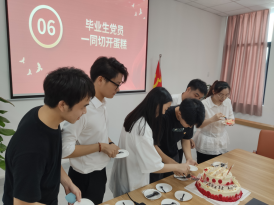 最后,毕业生党员们一同切开“请党放心 强国有我”的蛋糕,并带领发展对象、入党积极分子们一起写下心愿与祝福,共同庆祝党的生日。2019级学生党员陈福进饱含深情地说:“这次活动让我们倍感惊喜、倍感荣幸,党组织给予我们的深切关怀,我们会永远铭记于心,虽然即将毕业,但一定心存感激,反哺母校,坚定信念,继续发光发热,做好校友联系人。”