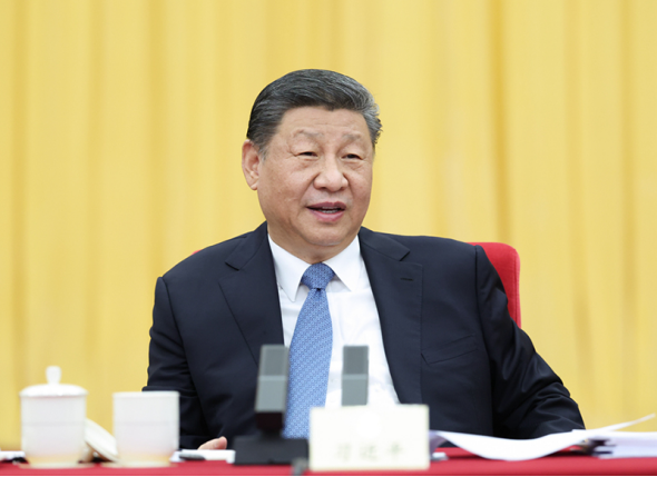 3月6日下午,中共中央总书记、国家主席、中央军委主席习近平看望参加全国政协十四届三次会议的民盟、民进、教育界委员,并参加联组会,听取意见和建议。中共中央政治局常委、全国政协主席王沪宁,中共中央政治局常委、中央办公厅主任蔡奇参加看望和讨论。 (新华社记者 王晔/摄)