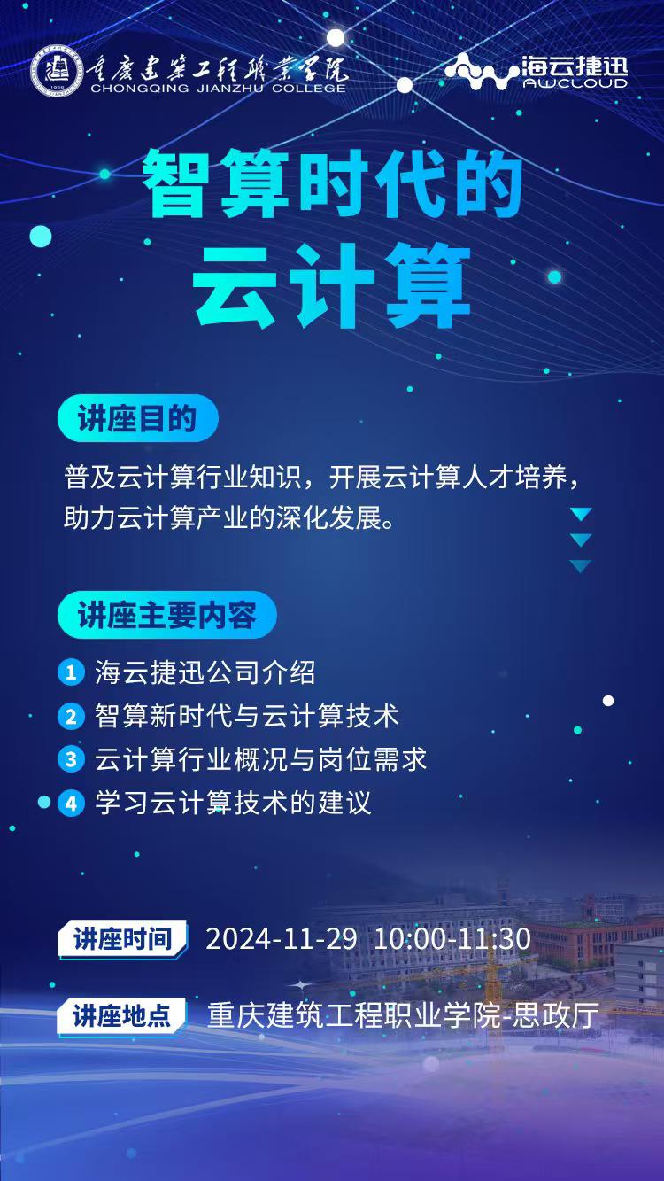 讲座内容:智算新时代;云计算技术;云计算行业岗位及人才需求。