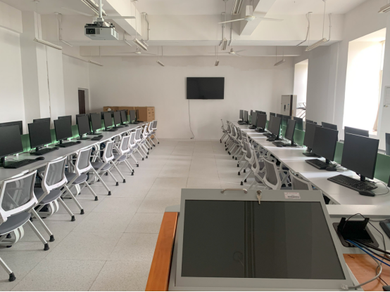 实训室占地面积约140㎡,配备计算机51台、专业教学软件51套、Java Web资源包1套、实训平台1套、移动应用开发资源包1套、自动售货系统1套、机场自助值机系统1套。实训室可一次性容纳50名学生进行理论和实践培训,面向计算机应用技术、人工智能技术应用、软件技术等专业开放,能满足学生完成Java程序设计、Python程序设计、数据库原理与技术、综合实训、毕业设计等10余门理事一体化课程的实践需要,提高学生实际动手能力,同时为教师从事软件开发、云计算开发的技术研究提供实验平台。