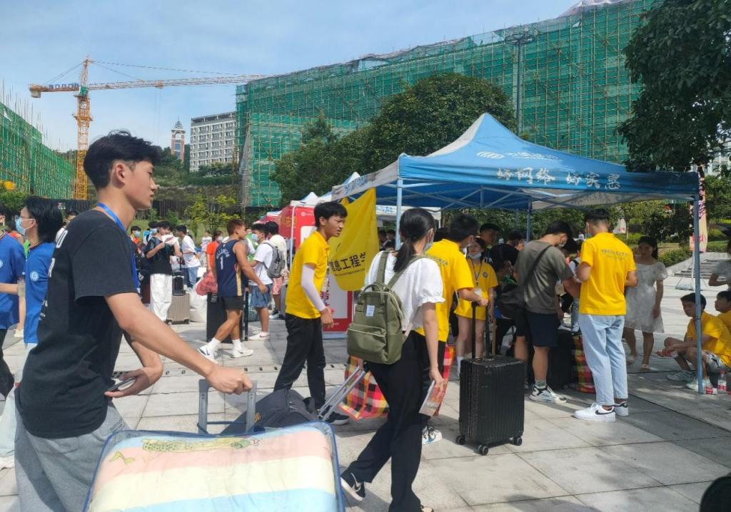 此次迎新活动,志愿者们分别在校外重庆北站出站口、地铁出站口设立接待点,为新生送上了来自智能制造与信息工程学院的第一份温暖。
