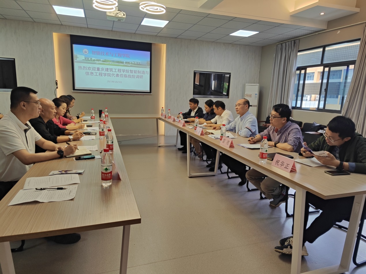 座谈会上,都进学书记代表重庆科技学院智能技术与工程学院对我院同仁的到访表示欢迎,并介绍了学院基本情况以及在党建工作、人才培养、学生管理等方面的一些优秀做法。然后双方就专本贯通等人才培养目标、学生技能竞赛、实训室建设等方面进行了热烈的讨论。