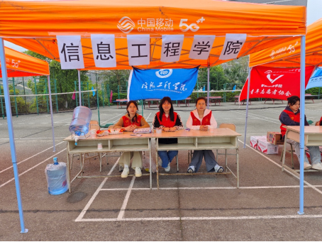 4月11日,koko体育官网举行第十三届田径运动会,信息工程学院团总支在足球场设立“服务站”,为学院的参赛运动员“保驾护航”。