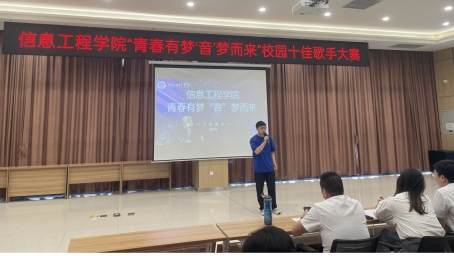 歌声点亮舞台,旋律编织梦想。近日,信息工程学院“青春有梦,‘音’梦而来”校园十佳歌手大赛在学生活动中心报告厅顺利举行。12名同学经过班级推荐选拔参加本次院级初赛。