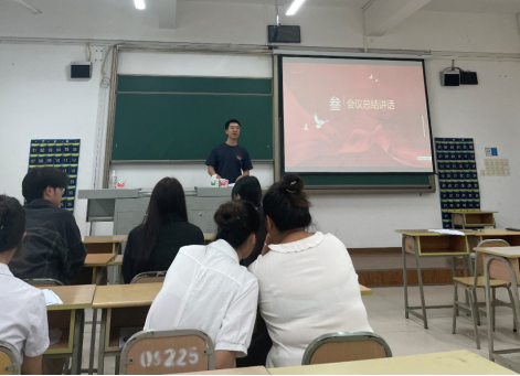 最后,学院团总支书记刘晨老师作总结讲话,他充分肯定了本学期学生会的工作成果和辛勤付出,鼓励同学们再接再厉、勇往直前,努力塑造成为一支守纪律、讲规矩、重品行的学生会队伍,切实服务学生群体,助力青年成长成才。