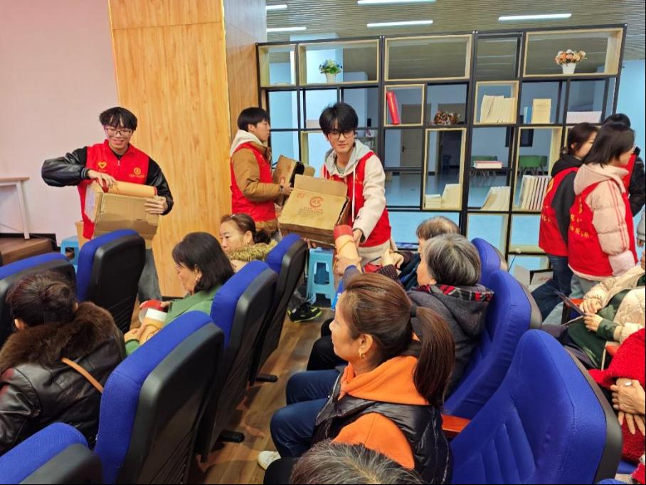 讲座结束后,志愿者们为老人们分发宣传礼品,现场气氛热烈,大家也纷纷为志愿者们点赞。