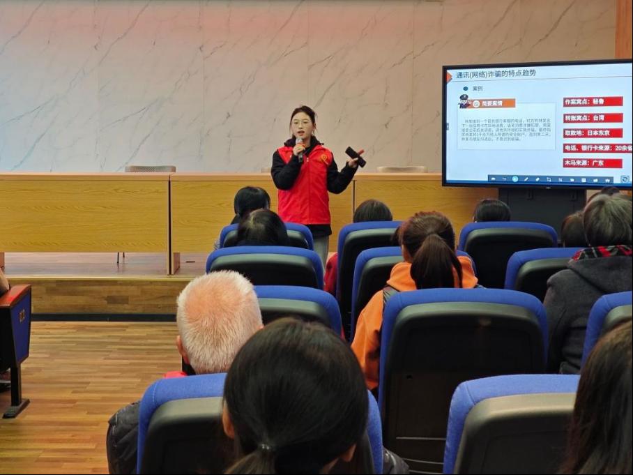 活动中,志愿者首先向老人们介绍近年来金融诈骗出现的形式:电信诈骗、非法集资、虚假投资平台、套路贷等,讲解了金融诈骗的定义和类型,对丰富详实、生动典型的案例做了重点讲解。着重强调了养老诈骗的常见套路、诈骗方式和特点,并叮嘱老年人注意保护自己的隐私,不要向陌生人透露自己及家人的身份、存款、银行卡等信息。时刻警惕诈骗分子的花言巧语,打消"用小钱赚大钱"的念头,切勿贪图小利。通过图文并茂的形式,让老年人更加直观地了解金融诈骗的危害,帮助老年人提高自我防范能力。