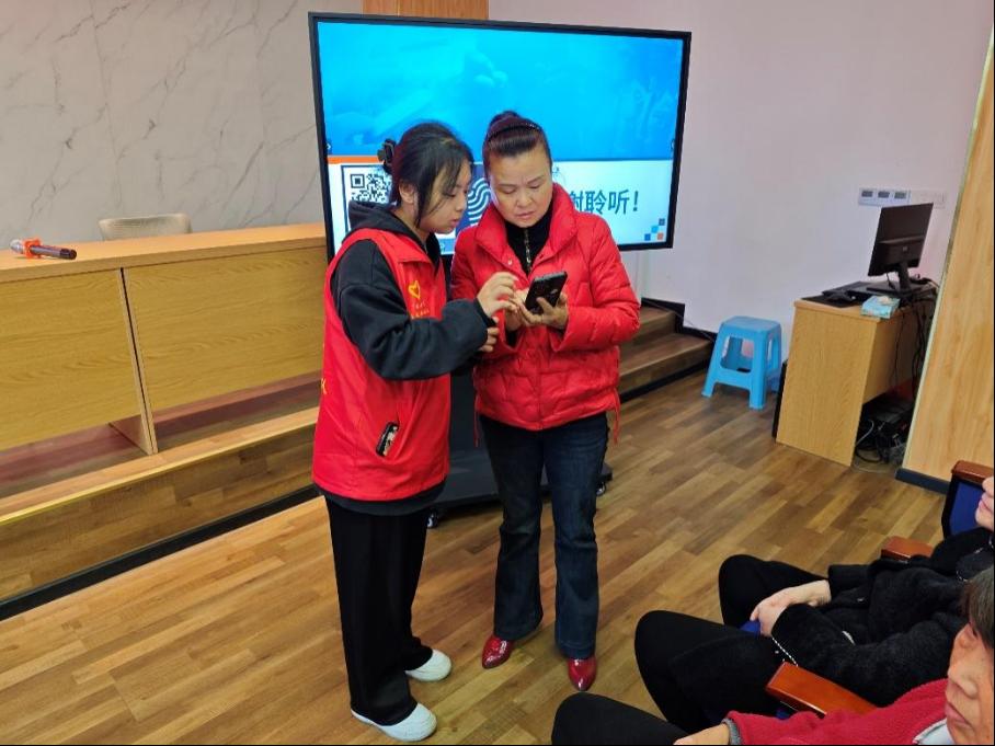 同时,志愿者们引导老年人下载“国家反诈中心”APP,切实筑牢防诈骗“防火墙”,守住老百姓的“钱袋子”,保证老人们的自身利益。