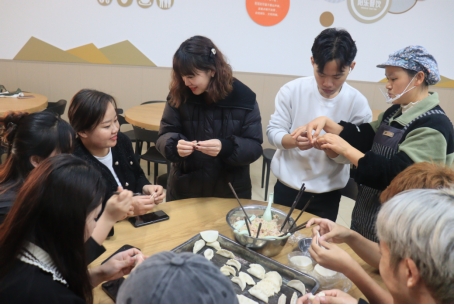 12月27日中午,留学生们在学校一食堂开展了“饺香满溢话团圆”暖冬包饺子活动。活动现场热闹非凡,在食堂工作人员的现场示范下,学院老师和同学们发挥奇思妙想,包出了一个又一个形态各异的饺子,每一颗饺子都承载着同学们对新年的美好祝福和对彼此的深深情谊。