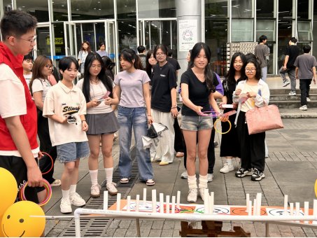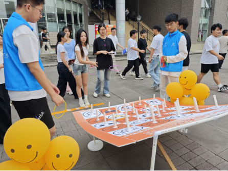 为响应“5·25”心理活动月号召,引导学生关注心理健康,释放学习生活压力,5月15日,人工智能学院参与学校“5·25”心理活动月系列活动,在一食堂门口设置了“圈住快乐”游园区域。本次活动吸引了众多学生踊跃参与,现场氛围热烈,欢笑不断。