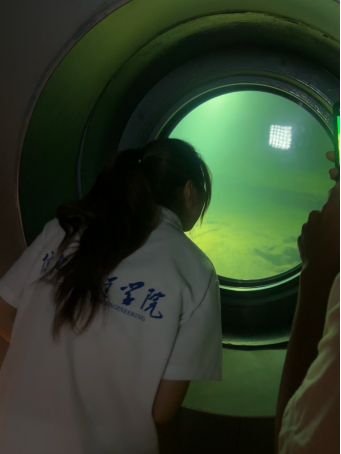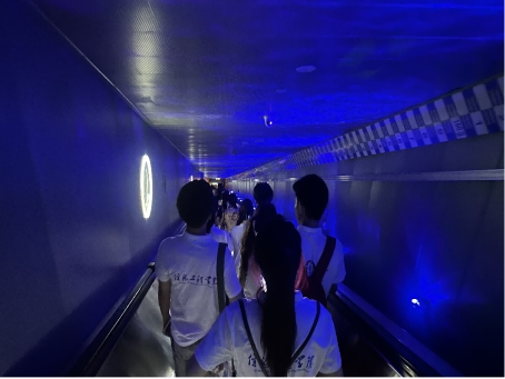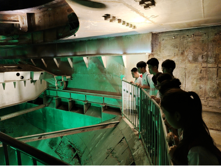 随后,团队成员们乘坐长达90米长的自动扶梯,深入水下40米深处进入水下参观展区,近距离感受“水下碑林”的震撼与水文观测的精妙。“科技让千年前的文物得到保护,这项工程真令人叹为观止!”实践团成员不禁感叹到。在这里,石刻与江水共生,历史与科技交融,成员们深刻感悟到中华文化的深邃与坚韧。