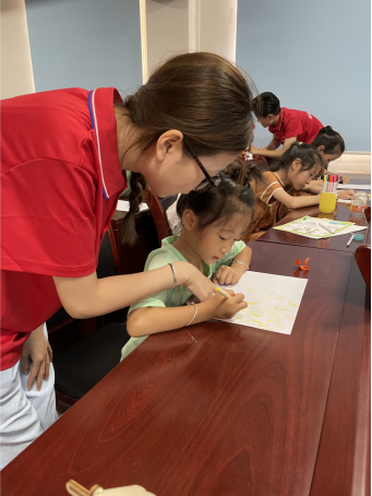 行之愈笃,知之益明。暑假里,我怀揣着饱满的激情与热忱,身着象征活力与希望的红色工作服,全身心投入到暑期伴学服务活动中。为了让课堂生动有趣、打动人心,我常常提前熬夜打磨课程内容,反复斟酌讲解方式,只为给孩子们带来更好的学习体验。
