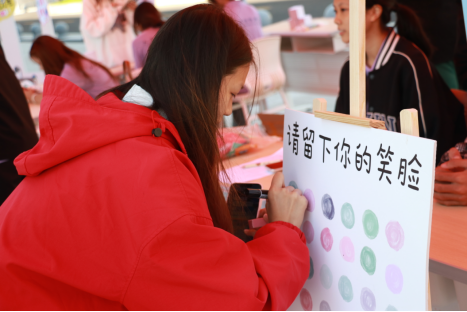 线下活动现场设置了三大特色活动,让学生在沉浸式体验中释放情绪、治愈心灵。在“绘心绘笑,悦纳自我”微笑自画像环节,学院提前备好彩笔等绘画工具,引导学生回忆近期开心、温暖的瞬间,聚焦自身微笑表情。不少学生自愿分享作品背后的故事,在交流中进一步接纳自我,传递积极情绪。