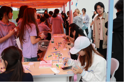 “手作风铃,承载秋暖”秋日风铃制作环节同样人气高涨。工作人员提前准备好空玻璃瓶、小铃铛等材料,讲解制作步骤与技巧,并分享风铃“传递美好、舒缓心情”的象征意义。学生们或独立创作,或分组协作,将秋日元素融入风铃设计,在穿绳、粘贴的过程中相互交流、互帮互助,既享受了手工创作的乐趣,又在轻松氛围中感受秋日温暖。