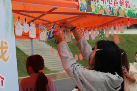 “树洞传情,阳光解忧”倾听心声树洞活动,则为学生提供了倾诉心声的安全空间。活动现场摆放密封的“树洞信箱”,并提供便签纸和笔。学生们可将近期的烦恼、焦虑、困惑或不愿轻易诉说的心声写在便签纸上,匿名投入信箱。