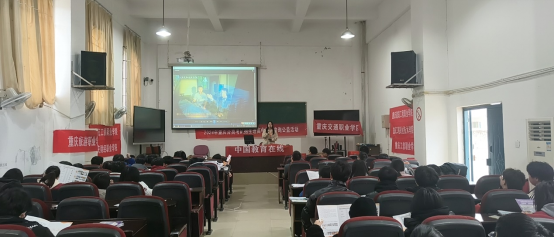 活动中,向丽娜、王欣两位老师向同学们介绍了重庆建筑工程学院的办学历史、办学理念、特色专业、校企合作、优质就业、实训条件、校园生活。