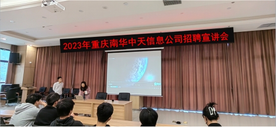 11月14日上午,重庆南华中天信息公司于koko体育举行了2023届秋季校园招聘宣讲活动。南华中天公司代表、koko体育就业指导中心老师以及即将毕业的学生共同出席了此次活动。