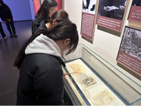祭扫仪式后,师生集体参观红岩魂陈列馆。透过200余件珍贵文物、400余张历史照片,从“狱中八条”的殷殷嘱托到江竹筠烈士的最后一封家书,从锈迹斑斑的刑具到泛黄的《挺进报》,沉浸式的观展体验让书本上的党史变得鲜活可触。在“11·27”大屠杀半景画展厅,借助声光电技术还原的历史场景令不少同学潸然泪下。“这些平均年龄不到30岁的烈士,用生命诠释了什么是信仰的力量。”青马工程学员王俊棚在参观笔记中写道。
