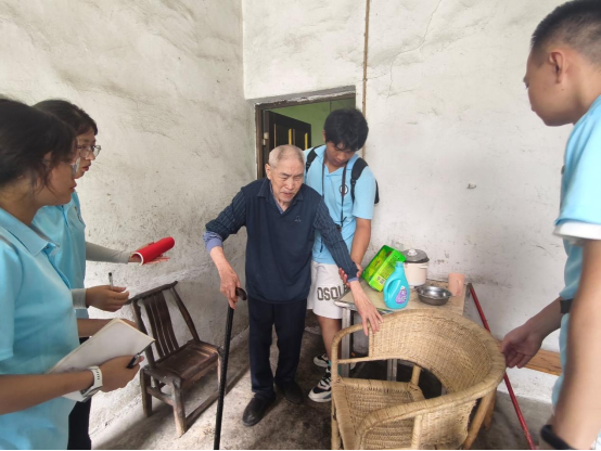 走访两位独居老人时,团队重点关注其生活上的不便:一位因坐骨神经痛行动不便,另一位八旬老人因车祸导致自理能力较弱。了解到他们的子女均在外务工、鲜少回家,但村干部会定期上门配送物资并提供帮扶,切实保障老人的基本生活,让老人感受到热心关怀。