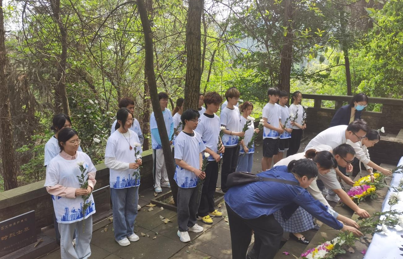 活动现场,由彭力博士为学生讲解周均时烈士生平,“威力”巨大的弹道学家周均时,曾听过爱因斯坦授课、专攻相对论,著有《弹道学》《高等物理学》等著作的物理学家,同时又是一位教育家,担任过同济大学、重庆大学工学院等院校校长,为革命真理奋斗不惜奉献自己的生命。支部全体党员、入党积极分子怀着无比崇敬的心情,整齐列队,肃立在革命烈士纪念碑前,默哀、鞠躬致敬,表达对先烈的崇高敬意和深切悼念。随后,依次敬献鲜花,打扫烈士墓周围环境卫生。