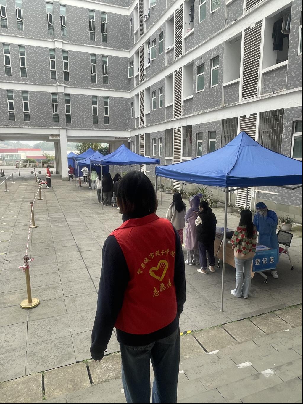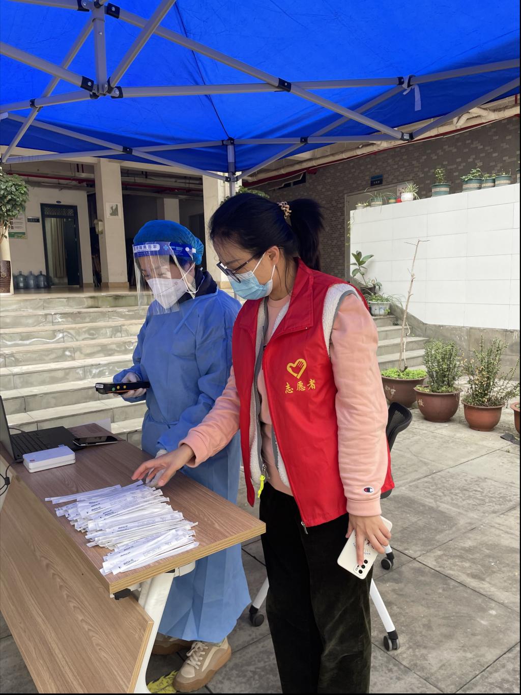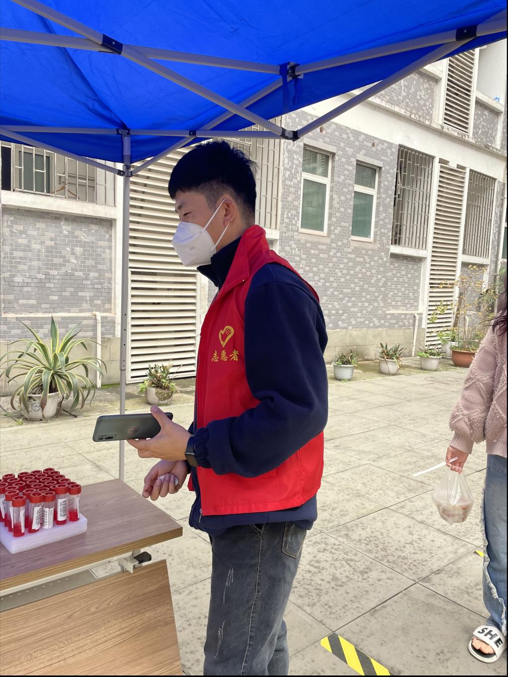 活动当天,大家早早到达指定地点做好各项准备,有负责核酸信息登记的志愿者,也有负责现场秩序维护的志愿者,统筹做好体温检测、秩序维护等安排。经过充分的准备后,大家有条不紊地穿上防护服后就立即投入工作。