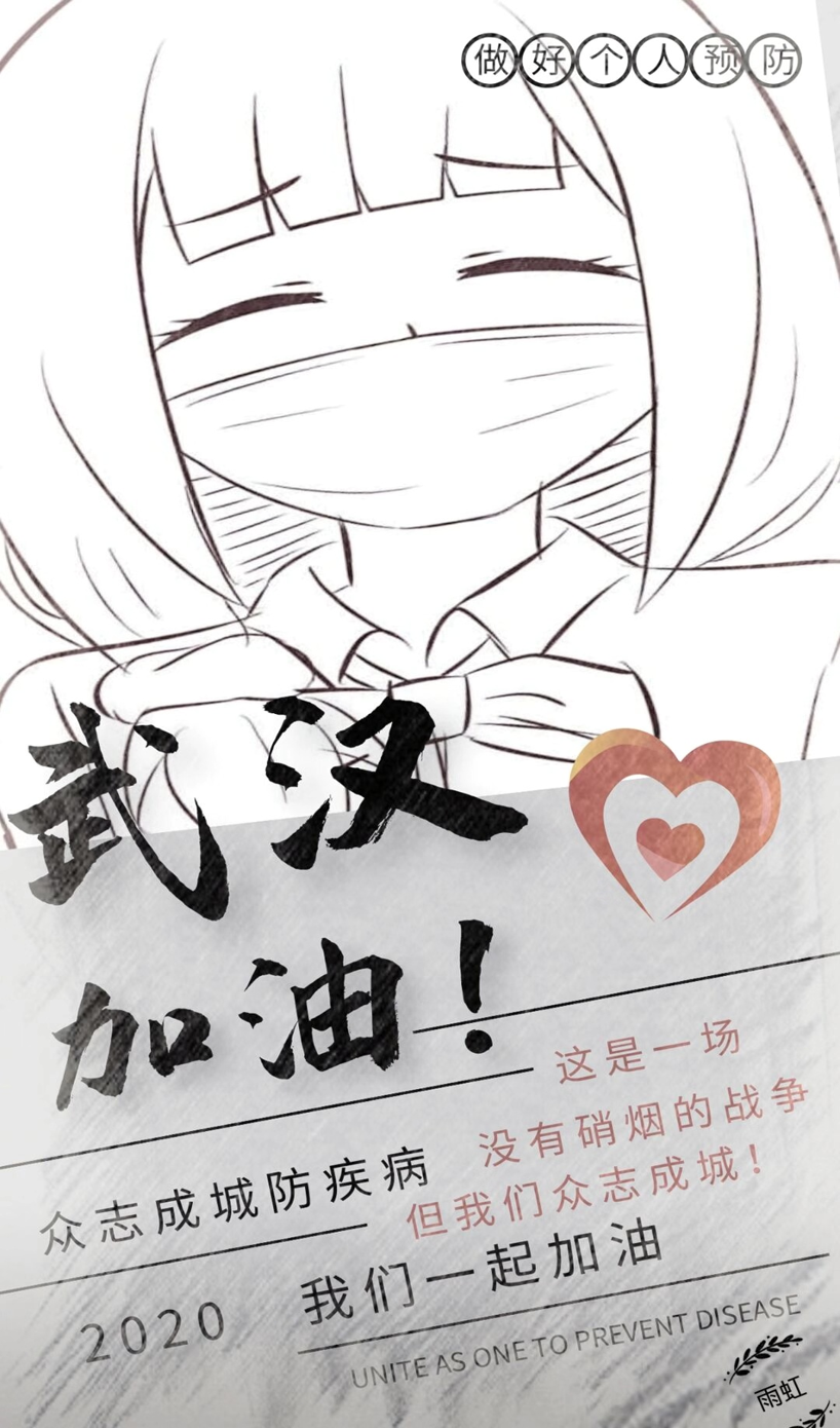 在这个非常战“疫”时刻,建筑与艺术系团总支响应团中央号召引导青年学生加入抗疫活动,向全体青年团员发起绘制抗击疫情作品征集令,以“众志成城、抗击疫情”为主题,创作了一批创意宣传海报,充分发挥文化创意宣传优势,助力打赢这场疫情防控战。作品如下: