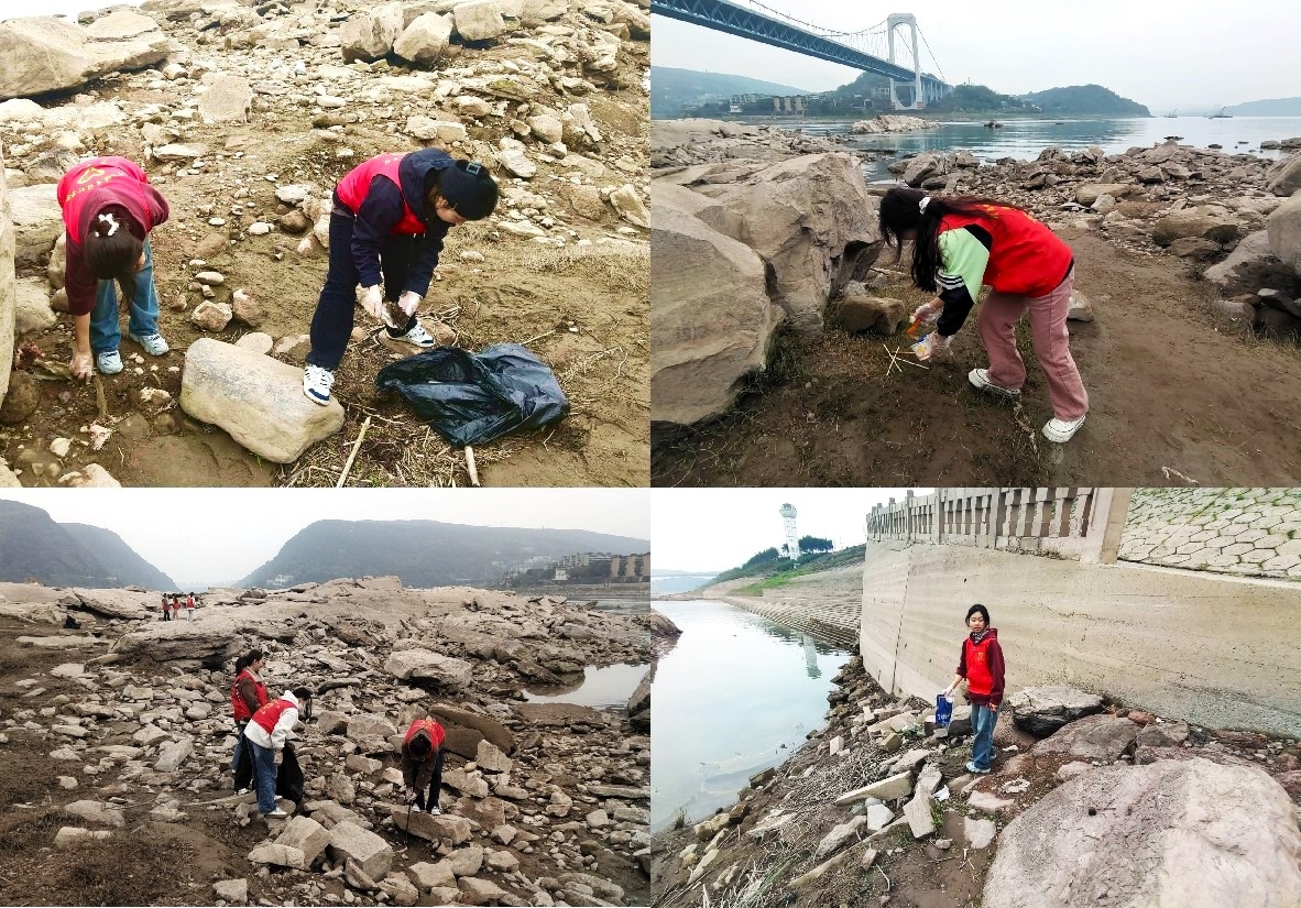 志愿者们积极践行 “奉献、友爱、互助、进步”的志愿服务精神,以实际行动参与峡口镇长江河域的生态保护,为保护母亲河贡献青春力量。