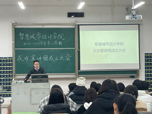 智慧城市设计学院为进一步加大防范电信诈骗的宣传力度,提高我院学生反诈防骗意识,于2023年2月23日在求实楼102召开“设计学院反诈宣讲团”成立大会,各班团支书和学生会全体成员参加此次会议。