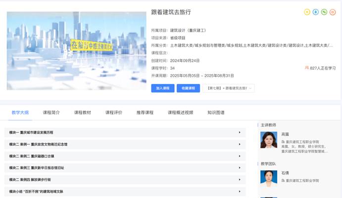 2023年重庆市职业教育在线精品课程《跟着建筑去旅行》