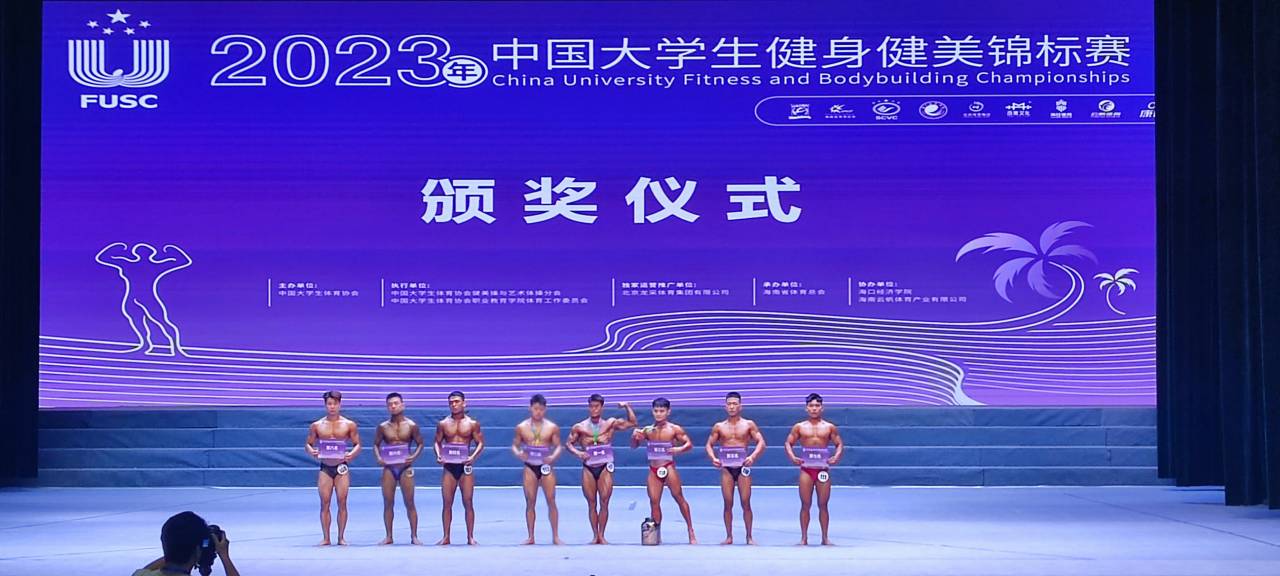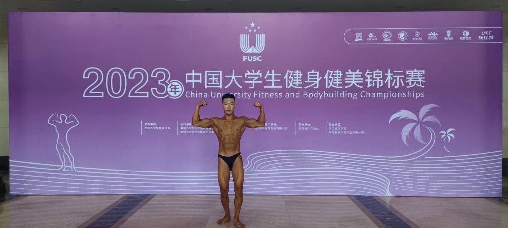 中国大学生体育协会主办2023年中国大学生健身健美锦标赛于10月24日-10月26日在海南省海口市成功举办。我院刘培鑫、谢开杰两名同学在学校健美教练的带领下,参加了此次比赛。