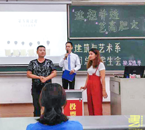 2018年6月15日,koko体育官网建筑与艺术系团总支学生会迎来了第六届换届选举大会。党总支书记彭珂、团总支书记陈贤艮、教师代表钟婷婷、杜惠超、樊人竞、晏丹丹、罗昭希,学生会全体人员及各班班长团支书出席本次以“建程并进艺高胆大”的主题的换届选举会议。