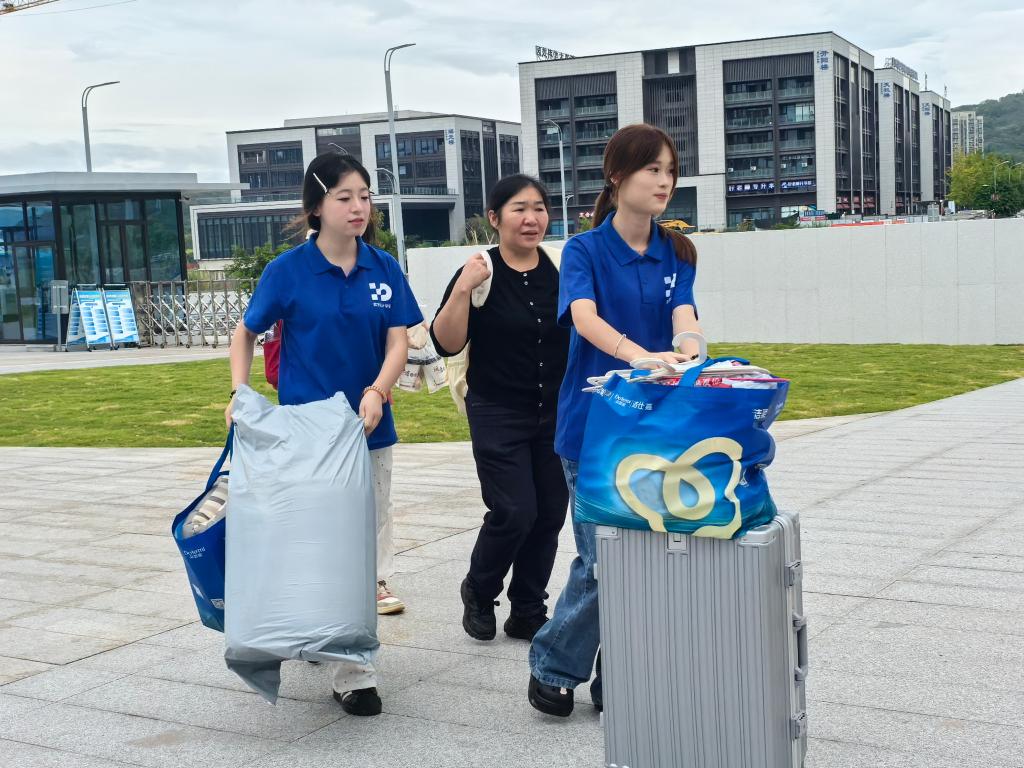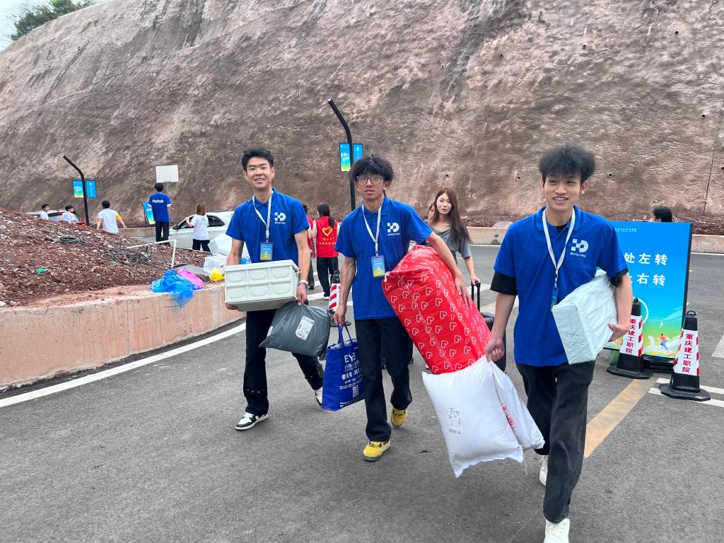 迎新现场“迎新起航 艺创未来”“筑梦启航 艺路同行的彩色标语格外醒目,与志愿者们统一的志愿服相映成趣。面对带着行李、略显拘谨的“萌新”,志愿者们立刻上前在报到入口,他们接过沉甸甸的行李箱,帮助新生登记、核对信息;在校园主干道,他们化身校园向导”,指着地图耐心讲解“食堂在宿舍楼斜对面,教学楼D1知新楼和D3栋尚艺楼。”;遇到拎着被褥、背包的新生,几名志愿者主动搭手,合力搬运行李搬,额角的汗珠顺着脸颊滑落,却丝毫没有影响他们脸上热情的笑容,用忙碌的身影在校园里勾勒出最温暖的风景线。一句句叮嘱、一次次帮扶,让“萌新们的不安渐渐消散,脸上露出了轻松的笑容。