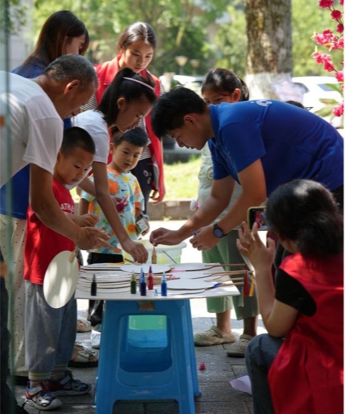 2025年7月17日,“艺路同行・数绘乡兴”实践团在四面山镇政府文化活动室开设了一场以 “漆扇制作” 为主题的暑期公益课堂,让孩子们近距离接触并体验传统漆扇的制作工艺,从而培养小朋友们的兴趣和文化自信。