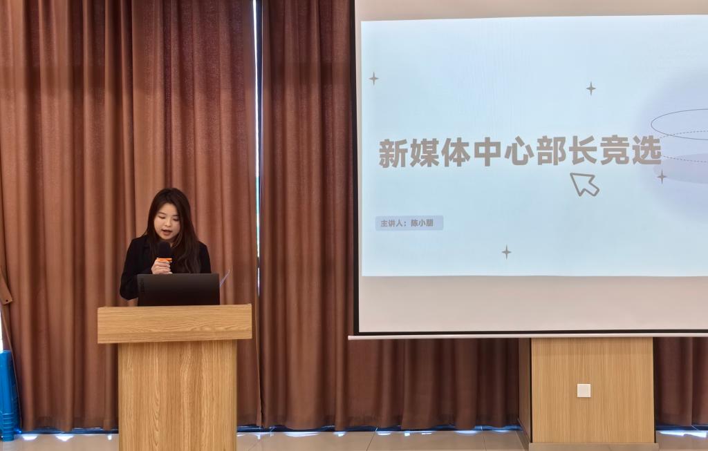 学院团总支学生会各部门学生干部候选人依次登台进行竞选演讲,围绕目标岗位认知、个人能力优势、未来工作规划三大维度等展开陈述。