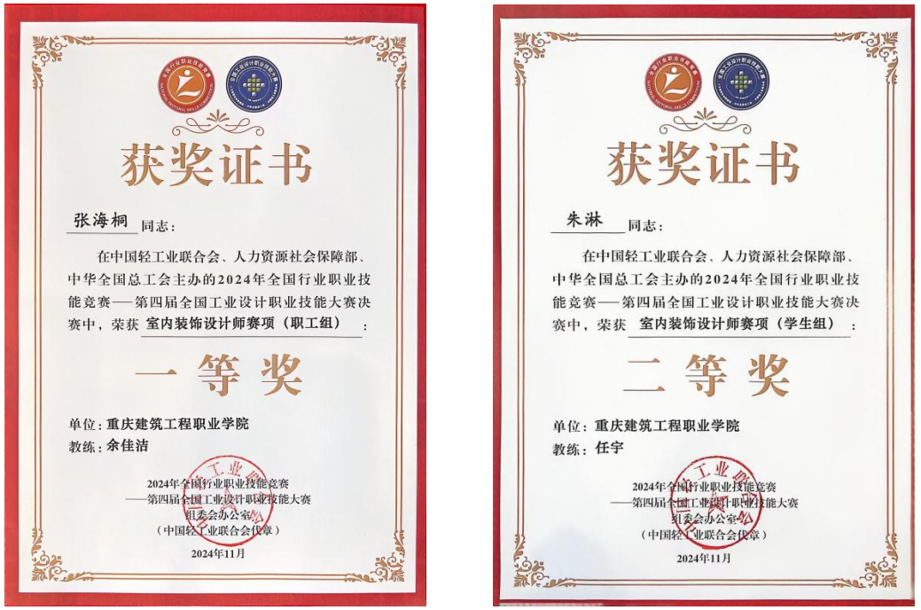 2024年11月30日,2024年全国行业职业技能竞赛——第四届全国工业设计职业技能大赛在郑州圆满落下帷幕。经激烈角逐,koko体育参赛选手凭借扎实的专业功底、卓越的创新能力与出色的赛场发挥,在室内装饰设计师赛项中脱颖而出。张海桐老师以全国排名第二的成绩荣获职工组一等奖、2023级建筑室内设计专业1班朱淋同学以全国排名第六的成绩荣获学生组二等奖。同时职工组教练余佳洁荣获“优秀教练”称号,张海桐获得申报“全国技术能手”称号资格。