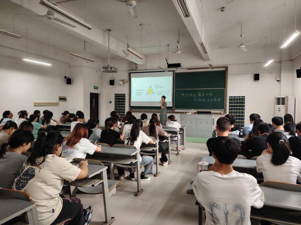 宣讲会现场气氛活跃,同学们积极与郭经理互动,咨询其培训考核形式、酬薪体系、晋升通道等未来发展问题。最后,通过提问解答的方式对课程的时间及地点安排,上课注意事项等问题做详细解答。咨询期间,同学们积极投送自荐书,现场共收到56份自荐书。