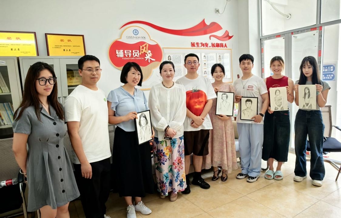 最后参与本次活动的师生捧着为自己量身定制的绘画作品合影留念,为本次活动画上完满句号。