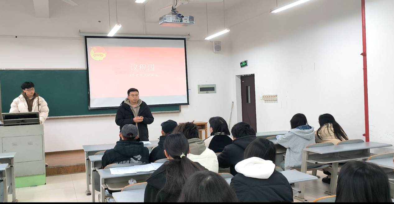 然后,学院团总支书记成真对此次专题组织生活会进行点评讲话,强调了专题组织生活会的重要性和必要性,要求全体团员和青年务必增强责任感和使命感,将思想和行动统一起来,用实践践行初心和使命。