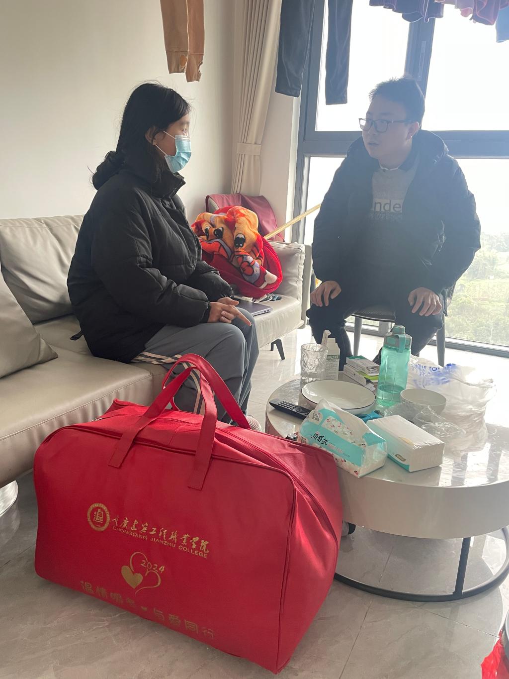 为深入贯彻党的二十大精神,全面落实立德树人根本任务,加强对家庭经济困难学生的人文关怀,巩固完善家校共育长效机制,提升资助育人成效。智慧城市设计学院开展了“温情暖冬•与爱同行”的新年慰问活动。2024年1月17日至19日,我院辅导员张樱稆实地走访慰问所带班级中5名家庭经济困难学生。