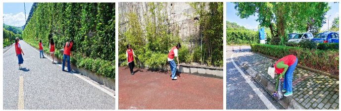 到达活动地点,大家按照事前分工,迅速而有序地投入到清洁工作中。志愿者一丝不苟地清理着每一处垃圾,不放过任何一个死角,不落下任何一张纸屑,一个个忙碌的身影穿梭在操场、篮球场,通过一个多小时的齐心协力,让操场、篮球场及周边变得干净整洁、焕然一新。