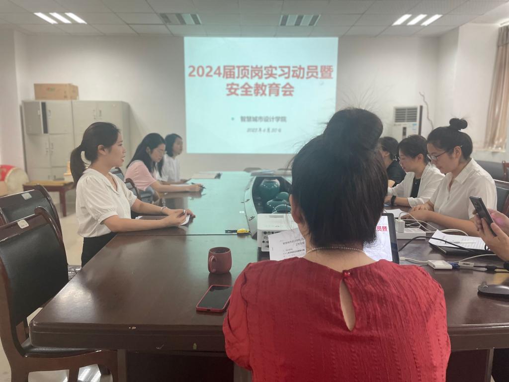 为扎实推进专业学生岗位实习工作,落实学校岗位实习工作精神,培养学生的首岗实践能力,2023年6月30日,智慧城市设计学院在厚德楼332召开2024届顶岗实习动员暨安全教育会议。全体毕业班辅导员和专业指导老师参会。
