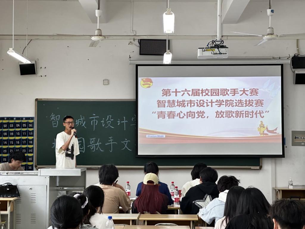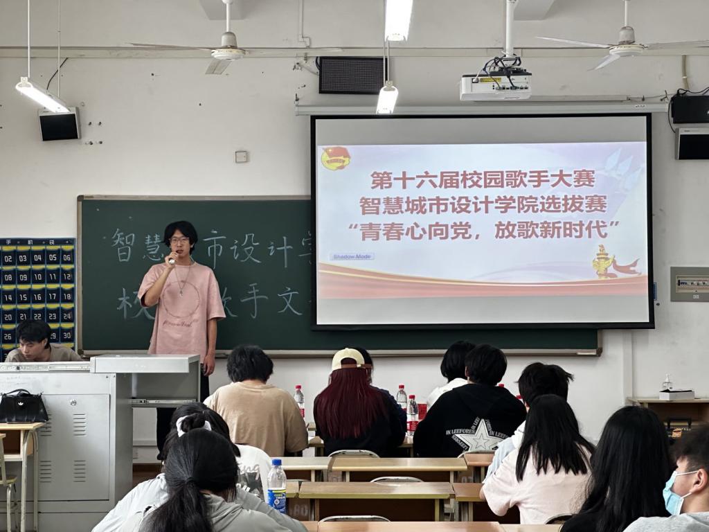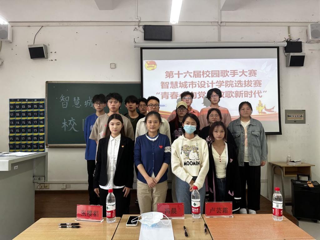 为深入学习宣传贯彻党的二十大精神,弘扬优秀传统文化,营造积极阳光的校园文化氛围。智慧城市设计学院于2023年5月15日在4-303教室举行“第十六届校园歌手大赛智慧城市设计学院选拔赛”,莅临本次活动的领导及嘉宾有学院团总支书记张樱稆、辅导员卢芸霜、冯晨以及学生会部分成员。