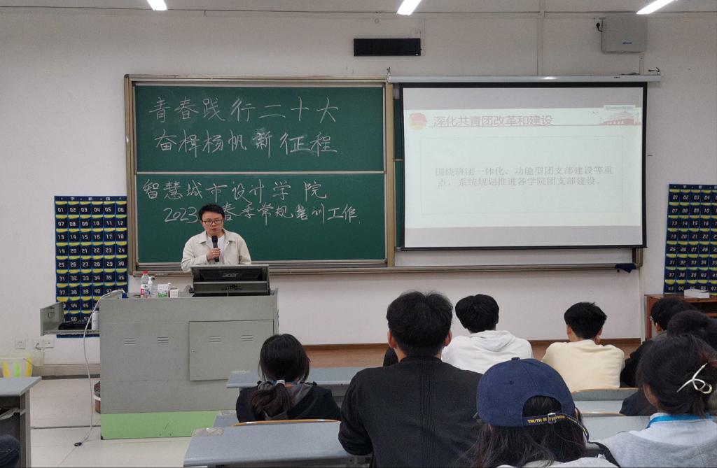 会上,张老师主要围绕共青团改革和建设目标,针对班团一体化、功能型团支部等重点工作,系统地规划推进蓝图。同时也强调青年大学习及第二课堂实施的重要性,要求我院班团干部及学生会成员严格要求自己,做好示范作用。最后,张老师号召我院学生积极参加各类活动,展现自我风采。