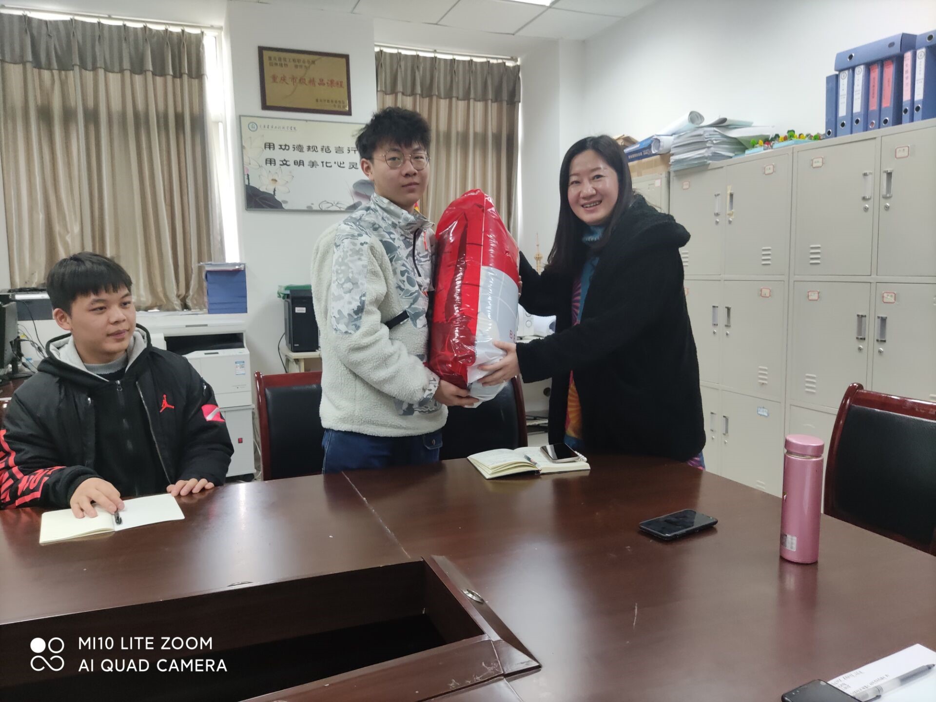 最后,彭珂书记还为与会同学发放了新年慰问品,送上一份系部的关心与祝福。同学们感谢学院一直以来给予的温暖和关怀,表示一定会牢记老师的谆谆教诲,通过勤奋学习来回馈家庭和回报学院。