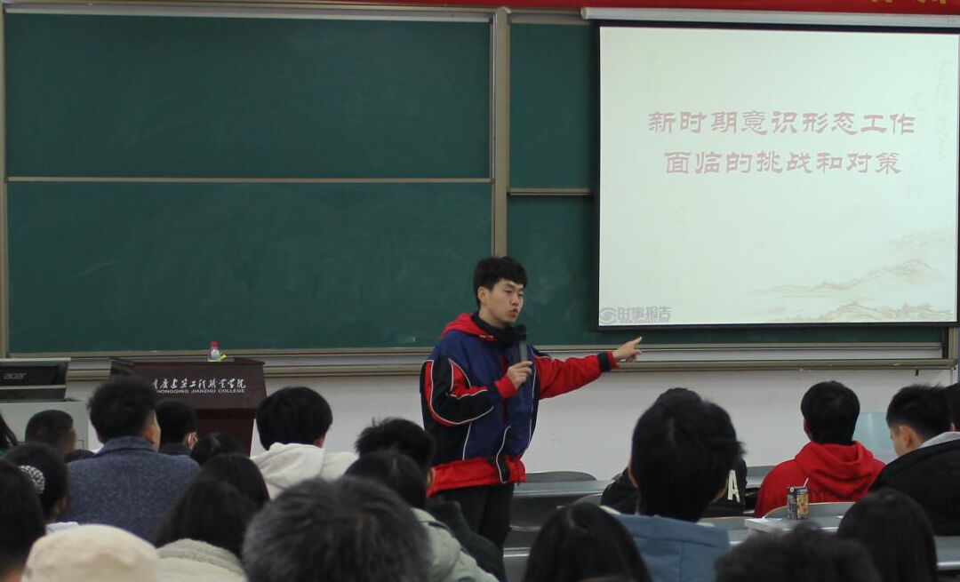 杜惠超老师从新时期意识形态的重要性,意识形态工作的主要任务,加强意识形态工作,把握意识形态工作的关系。由小到大,由远及近,向参会成员阐述新时期意识形态工作,增强大学生民族自信心。