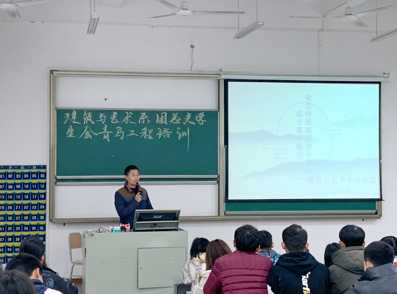 新媒体中心讯:12月23日中午12:10,建筑与艺术系团总支学生会以《如何提高团学干部的能力和素质》为题在求实楼5-110开展学生干部培训大会。大会由团总支王川东书记主持召开。