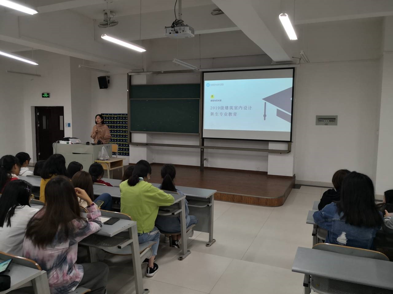 为帮助装饰相关专业2019级新生更快进入专业课程的学习状态,明确学习目的,端正学习态 度,增强学习动力,顺利完成从中学到大学的角色适应和角色转变,2019年10月16日-30日,我系邀请了唐卡装饰设计公司的设计师及唐启店店长熊远虎,与各位专任教师一起,对建筑装饰工程技术、建筑室内设计、室内艺术设计、建筑动画与模型制作、环境艺术(3+2)等专业班级分别进行了专业教育讲座。