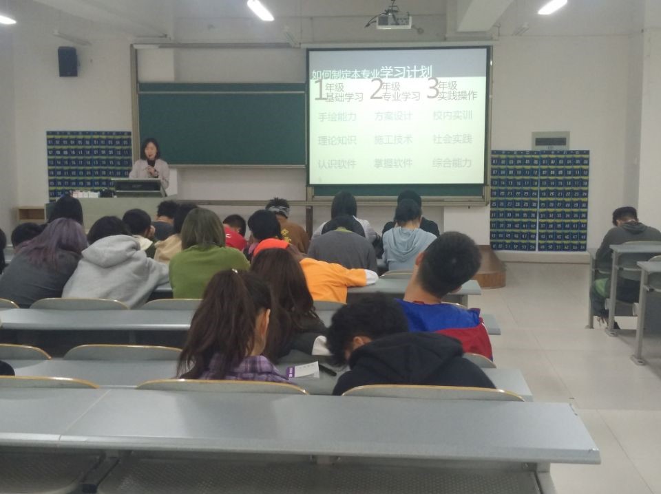 熊老师就全国和重庆建筑、装饰等行业的发展现状、前景等做了介绍,并对与专业相关的岗位特点和能力要求做了详细的讲解,内容丰富接地气,使学生们对行业需求、专业学习的方向更加明确,增强了学习动力。