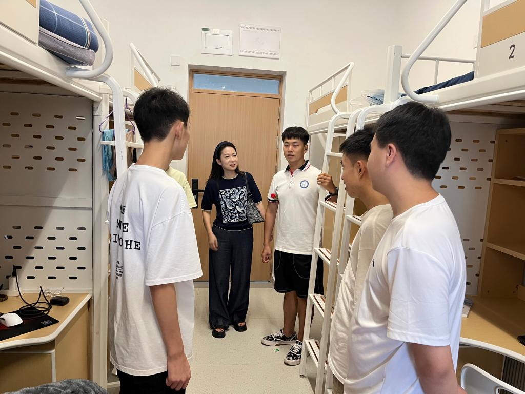 走进新生宿舍,老师们便与同学们亲切交流起来。“从哪里来呀?”“校园环境还适应吗?”“生活上有没有什么困难?”一句句暖心的询问,拉近了师生间的距离。同学们也敞开心扉,和老师分享自己的想法与感受。