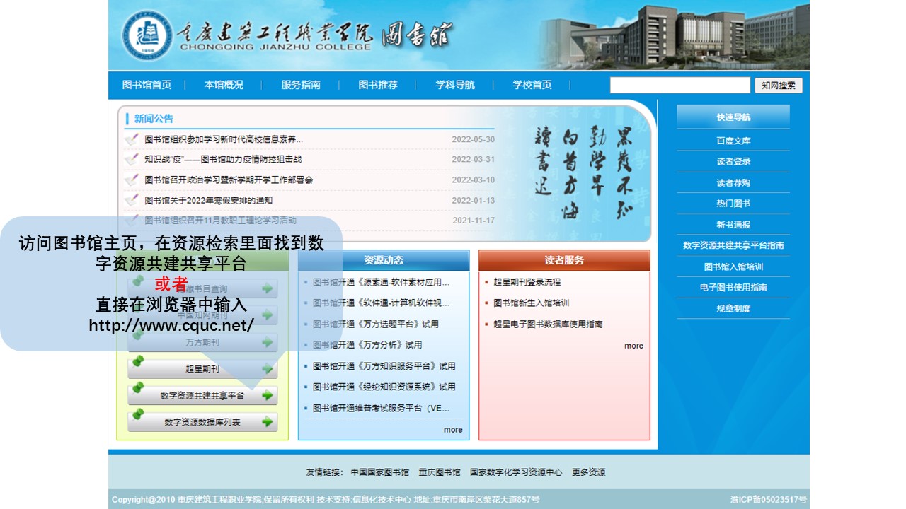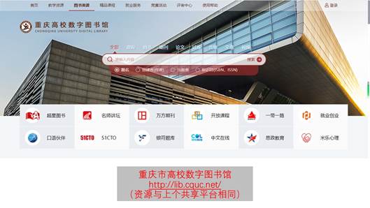 为了满足学校师生教学科研方面的资源需求,现更新重庆市高校数字图书馆数字资源共建共享平台的使用指南。